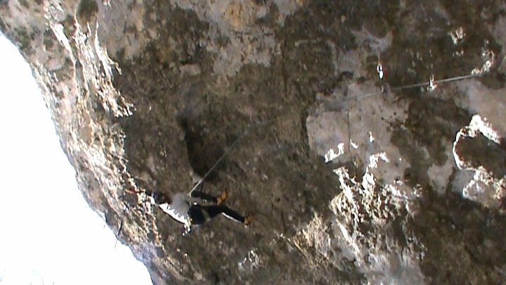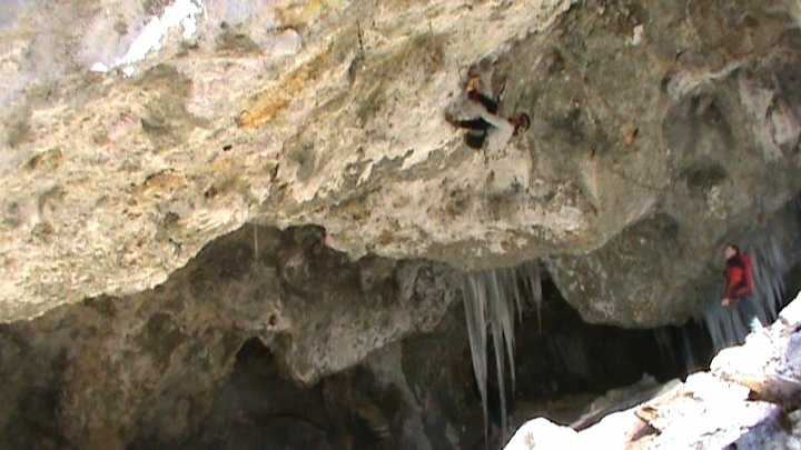 Sie befindet sich in der Mixedgrotte von Landro, auch im Höhlensteintal. Jene Route hat eine Länge von 40m und ist andauernd überhängend. Im Jahr zuvor war ich schon in der Route, scheiterte damals aber zweimal kurz vorm Durchstieg.