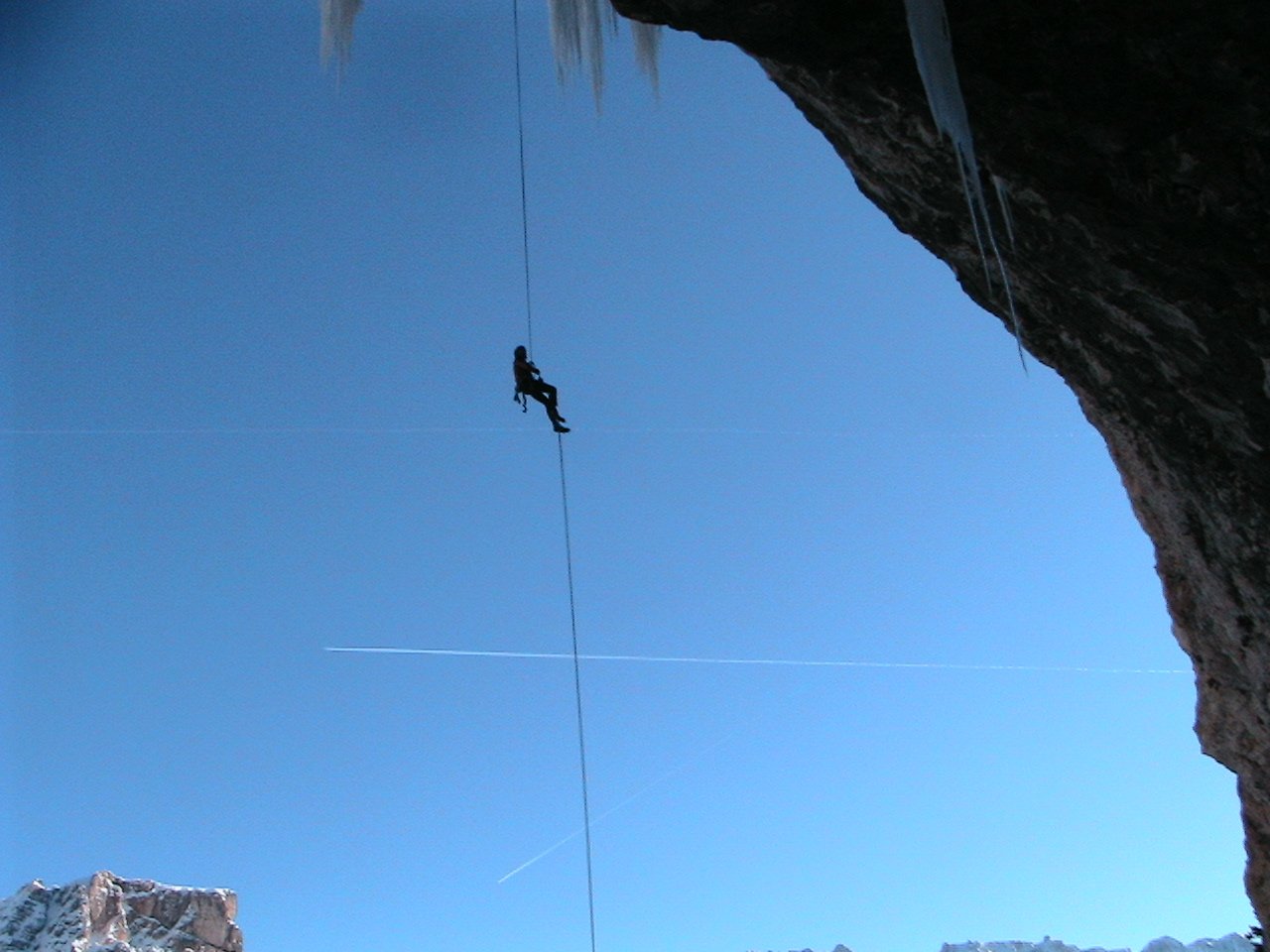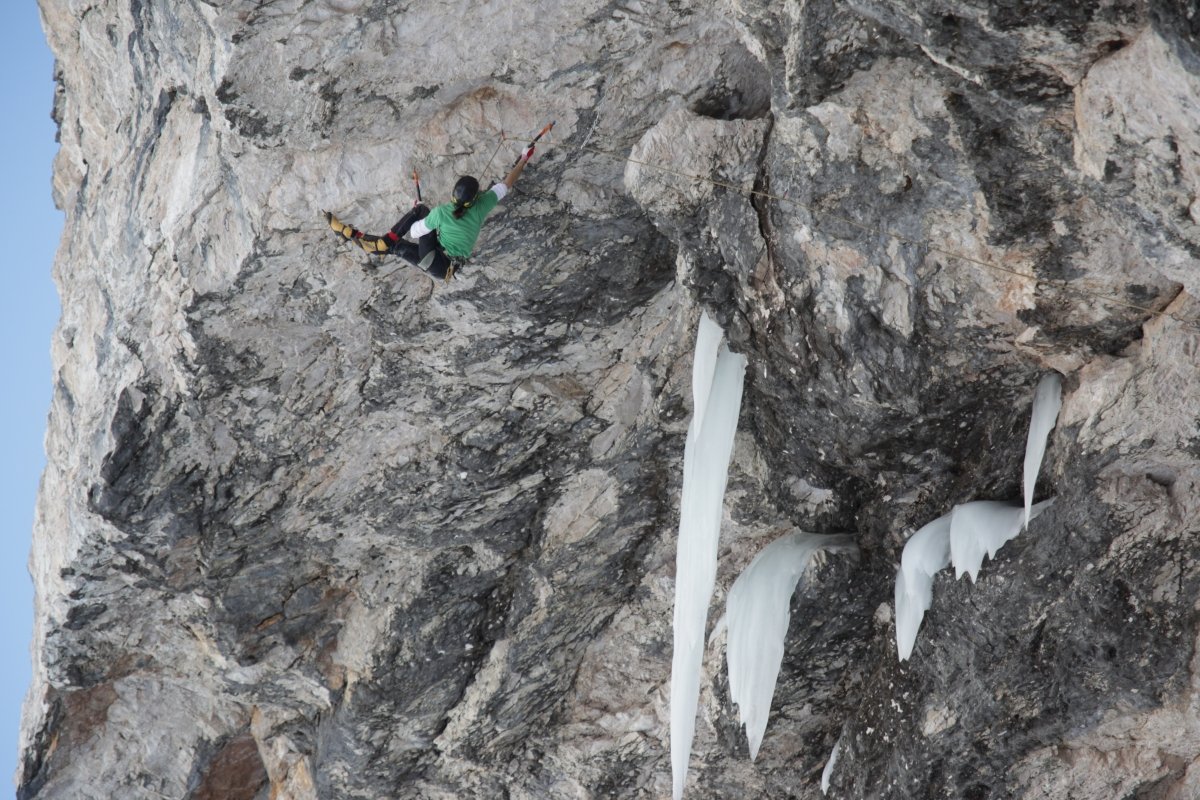 Am zweiten Versuchstag konnte ich das Meisterwerk des sehr bekannten Südtiroler Kletterers Christoph Hainz „Ice Age 3“ M13 ober Cimabanche im Höhlensteintal/Pustertal, im vierten und fünften Versuch, also zweimal in Folge durchsteigen.