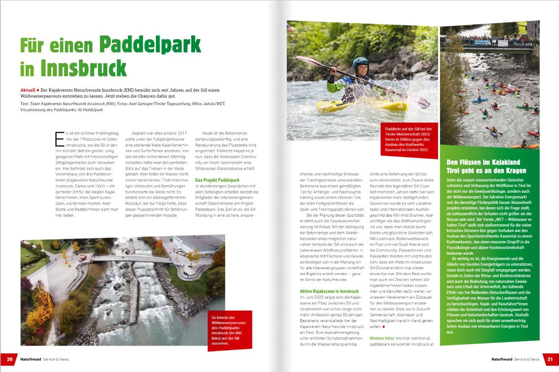 Für einen Paddelpark in Innsbruck: Der Kajakverein Naturfreunde Innsbruck (KNI) bemüht sich seit Jahren, auf der Sill einen Wildwasserparcours entstehen zu lassen. Jetzt stehen die Chancen dafür gut.