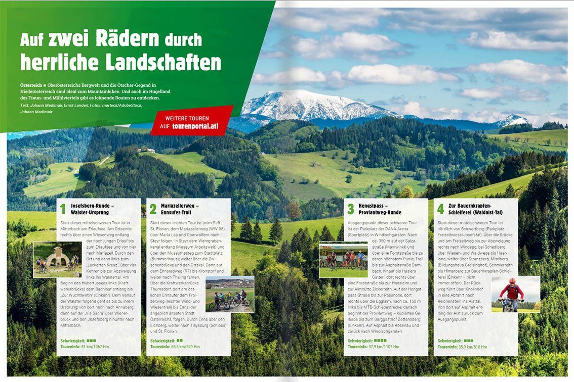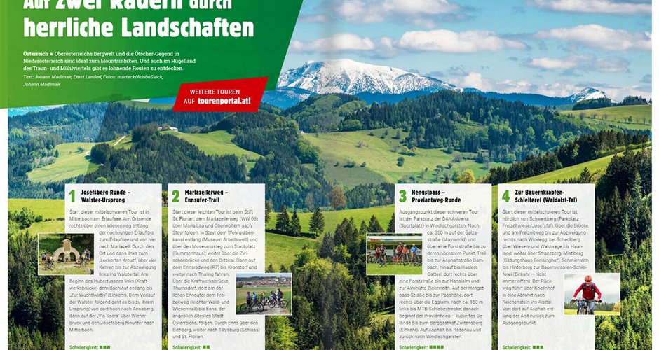 Auf zwei Rädern durch herrliche Landschaften: Oberösterreichs Bergwelt und die Ötscher-Gegend in Niederösterreich sind ideal zum Mountainbiken. Und auch im Hügelland des Traun- und Mühlviertels gibt es lohnende Routen zu entdecken.