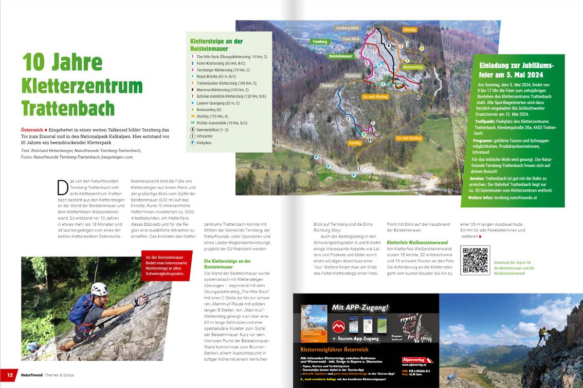 10 Jahre Kletterzentrum Trattenbach: Eingebettet in einen weiten Talkessel bildet Trattenbach das Tor zum Ennstal und in den Nationalpark Kalkalpen. Hier entstand vor 10 Jahren ein beeindruckender Kletterpark.