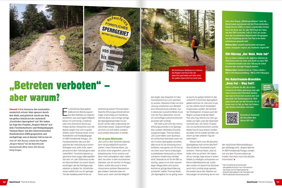 Betreten verboten - aber warum? Ein Szenario, das niemanden sonderlich erfreut: Man spaziert durch den Wald, und plötzlich taucht am Weg ein gelbes Schild mit der Aufschrift „Forstliches Sperrgebiet“ auf. Wir haben im Zuge des Projekts „Respect Nature“ mit dem Forstfacharbeiter und Waldpädagogen Thomas Maier von den österreichischen Bundesforsten (ÖBf) gesprochen und nachgefragt, was in diesem Fall zu tun ist.