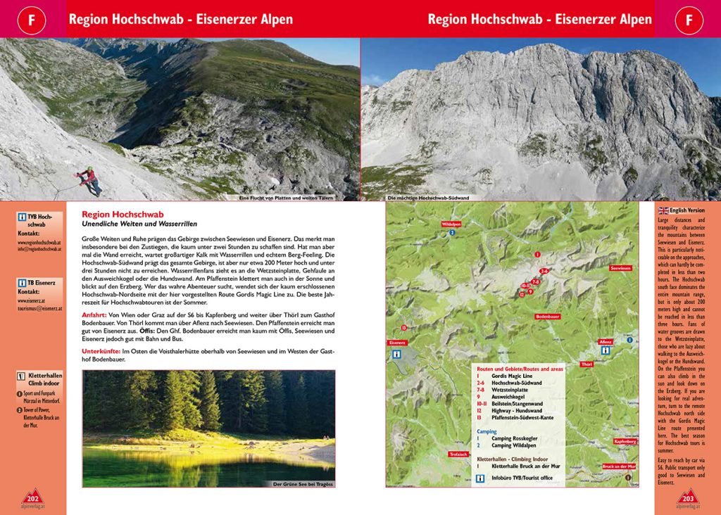 There are also short English abstracts with the most important information about the fixed rope routes in the book. The Topos and GPX-Tracks are in the App. Die Touren haben auch englische Kurzbeschreibungen.