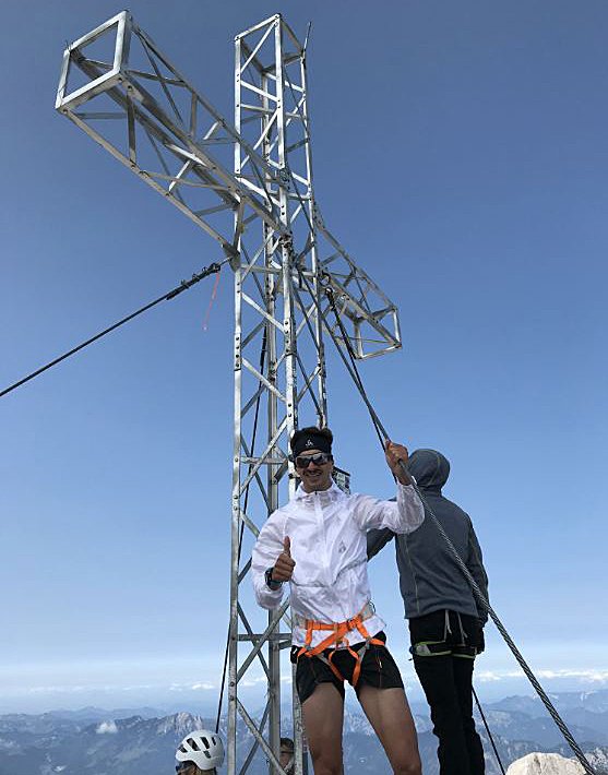 Armin erschöpft am Marktplatz: „Ich bin überglücklich, lange habe ich davon geträumt, aber der Respekt von der Höhe und den Kilometern war immer sehr groß. Ich fühlte mich von Anfang an sehr gut und konnte einen guten Rhythmus laufen, die Bedingungen waren perfekt und ab dem Gletscher wusste ich, es kann sich unter 3 Stunden auf den Gipfel aus gehen".