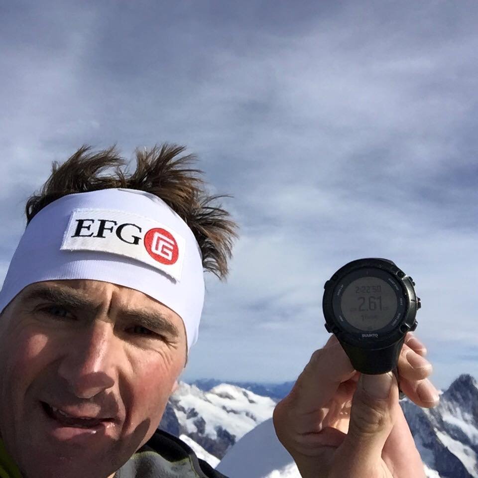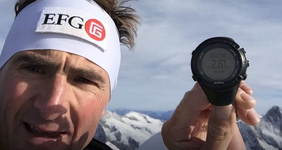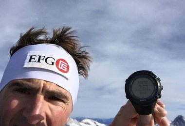 Ueli Steck auf dem Gipfel mit 2:22 auf der Uhr. Foto: uelisteck GmbH