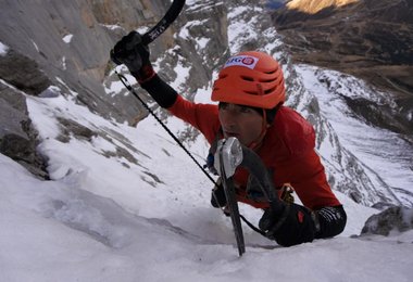Ueli Steck: Die Idee kam mir am Mittwoch, als ich zusammen mit Nicolas in 3:46 Std. durch die Wand geklettert bin. Ich wollte schon lange mal gehen um zu sehen, wie der Unterschied ist, zwischen einer freien Begehung ohne Spur wie 2008 und wie jetzt, als ich mich zum Teil an den Haken hochgezogen habe und auch das Fixseil am Hinterstoisser Quergang benutzt habe. 2008 war für mich doch ziemlich am Limit. Jetzt war es ziemlich locker und auch total save. Macht viel mehr Sinn.