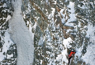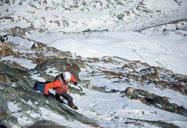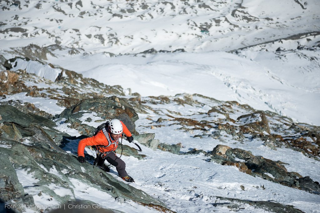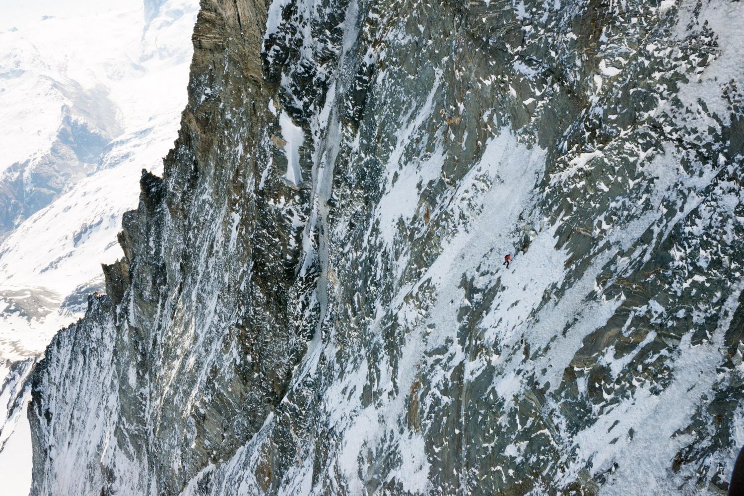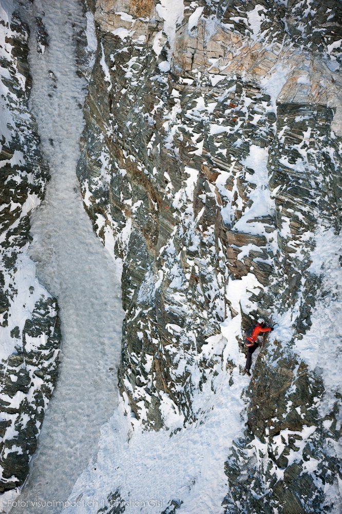 Dani Arnold in der Matterhorn Nordwand (c) visualimpact.ch/Christian Gisi