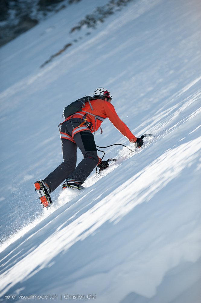 Speed und Solo Begehungen sind eine Form des Alpinismus, die dem Urner Bergführer besonders liegen. Er ist bekannt dafür, viel «Dampf» zu haben und auch in schwierigem Gelände mit traumwandlerischer Sicherheit unterwegs zu sein. Schnelligkeit ist aber längst nicht das einzige, was Arnold sucht. Er sieht sich als Allrounder und setzt sich in verschiedenen alpinistischen Bereichen stets neue Ziele. So war er auch in diesem Frühling mit verschiedenen anderen Projekten beschäftigt und arbeitete nicht speziell auf eine neue Rekordmarke am «Horu» hin. «Ich dachte, nach den vielen Vorträgen im Winter sei ich nicht so fit», erzählt er. «Auf den letzten Touren lief es aber super gut.» So kam plötzlich die Nordwand wieder ins Blickfeld. Die Bedingungen, die Arnold in der Wand auffand, waren gut, aber nicht perfekt. Besonders im oberen Teil lag wenig Schnee, das Klettern auf blankem Eis oder auf den Felsen gestaltete sich entsprechend anspruchsvoll. Das bringt Arnold zum Fazit: «Es würde wahrscheinlich noch schneller gehen.»