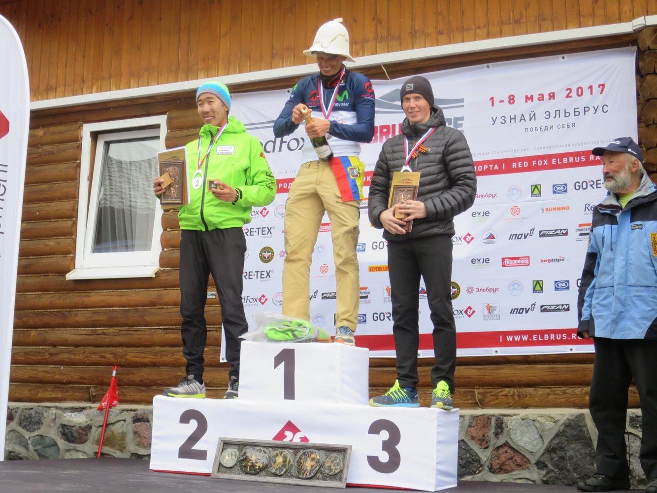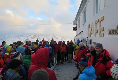 Einmal auf dem höchsten Punkt Europas stehen wollte auch die von Laufcoaches.com organisierte deutschsprachige Gruppe mit Anton Philipp, Seppi Neuhauser, Adriano Colle, Oliver Schneider, Michel Ufer, Gerald Blumrich, Markus Lietz, Andreas Jentzsch und Michael Raab. Motiviert durch das Ziel ganz oben anzukommen, bereiteten sie sich intensiv vor, reisten entsprechend früh zur Akklimatisation an und trainierten täglich am Berg. So finishten auch alle strahlend auf einem der vorderen Plätze. Philipp belegte im Gesamtklassement einen hervorragenden 6. Rang, in seiner Altersklasse den 3. Platz, Raab in seiner sogar den 1. Platz. Dies ist beachtlich, denn das Rennen stellt eine Grenzerfahrung für die Athleten dar und das Niveau der Teilnehmer ist hoch. Nur rund 2/3 der gestarteten Teilnehmer erreichen überhaupt das Ziel auf dem Westgipfel des Elbrus. Auf diesen Erfolg hin stieß die Deutsch-Österreichische Gruppe nach dem Rennen mehrfach mit dem gleichnamigen 5642-Bier an und sind selbst nach ihrer Rückkehr noch überwältigt von den spektakulären Eindrücken.