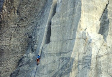 Gleich-zeitig wird das Risiko immer höher, denn die Sturzgefahr erhöht sich beim Simultan-Klettern an der Nose bis auf 60 m! Erst wenn der 1. schwere Unfall eintritt, wird man mit dieser Leistungsmesserei aufhören - für eine Weile.