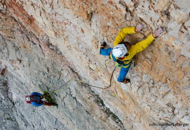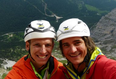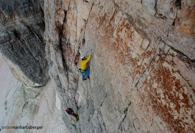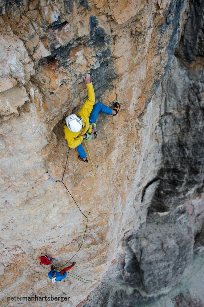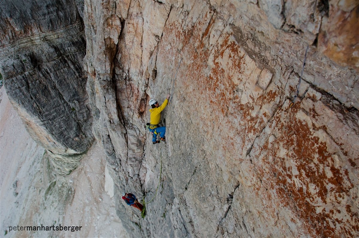Simon Gietl und Daniel Tavernini gelingt eine schwierige (10-) nur mit Normalhaken abgesicherte Erstbegehung in der Tofana di Rozes Südwand. Hier Simons Bericht.