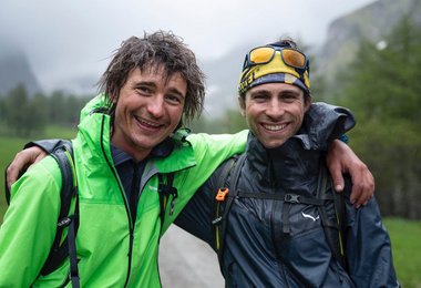 Es folgte der Abstieg an der Südseite. Auf dem Normalweg hinunter zur Adlersruhe, weiter über das Ködnitzkees hinunter ins Ködnitztal. Nach genau 47 Stunden und 16 Minuten erreichten Simon Gietl und Vittorio Messini das „Ziel“ beim Lucknerhaus. Erschöpft aber mit ihrer gewaltigen Leistung doch recht zufrieden wurden die letzten Meter – natürlich im Regen – zurückgelegt. Das Lächeln in Simons und Vittos Gesicht sagt eigentlich alles, was man über die 47:16 Stunden, die 391,4 Kilometer und die 9535 Höhmenmeter noch erzählen kann.