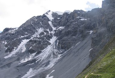 Die beiden gingen taleinwärts und erreichten die Pasterze (der größte Gletscher Österreichs), dort waren sie auch wieder „online“, da ihnen die auf den Fahrrädern vergessenen GPS-Tracker von der Begleitmannschaft gebracht wurden. Wieder war das Wetter schlecht, es regnete leicht aber es gab zum Glück kein Gewitter.