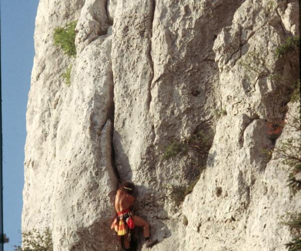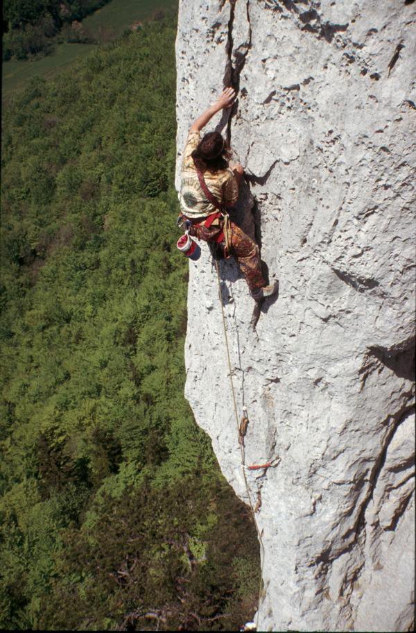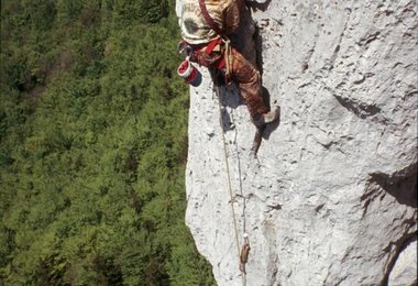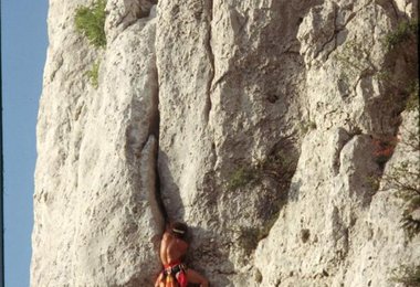 Damals kletterten Felix und Christian mit 3 Normalhaken und Klemmkeilen durch die rd. 40 m lange Tour am Cimone. Heute stecken in der gleichen Tour 14 Bohrhaken! Trotz ihrer Schönheit gehört sie nicht zu den meistbegegangenen Peilsteintouren, da sie auf einem Absatz in rd. 20 m Höhe beginnt und erst über eine andere Tour erreicht werden muss, was den Klettermassen am Peilstein, die sich durch die Übersicherung großer Teile des Gebietes stark vermehrt haben, zu mühsam ist.