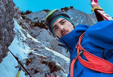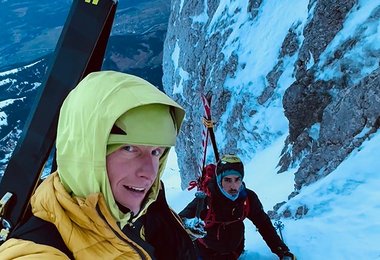 Die nachfolgenden Flanken waren von unterschiedlichsten Schnee- und Eisvarianten geprägt. Besonders die Übergänge zu den Grat- und Felspassagen waren aufgrund des weicheren Schnees teilweise extrem mühsam und tricky. Über die Linienwahl und Co. waren wir uns während der gesamten Route immer zu 100 Prozent einig - Teamwork par excellence!