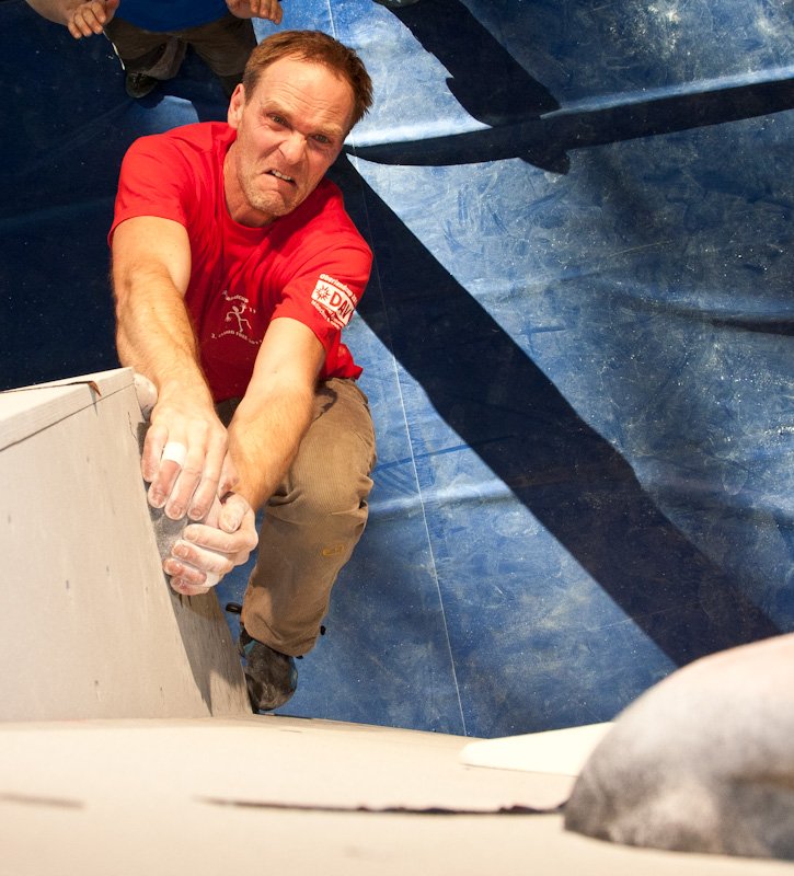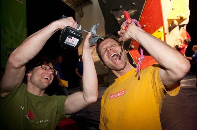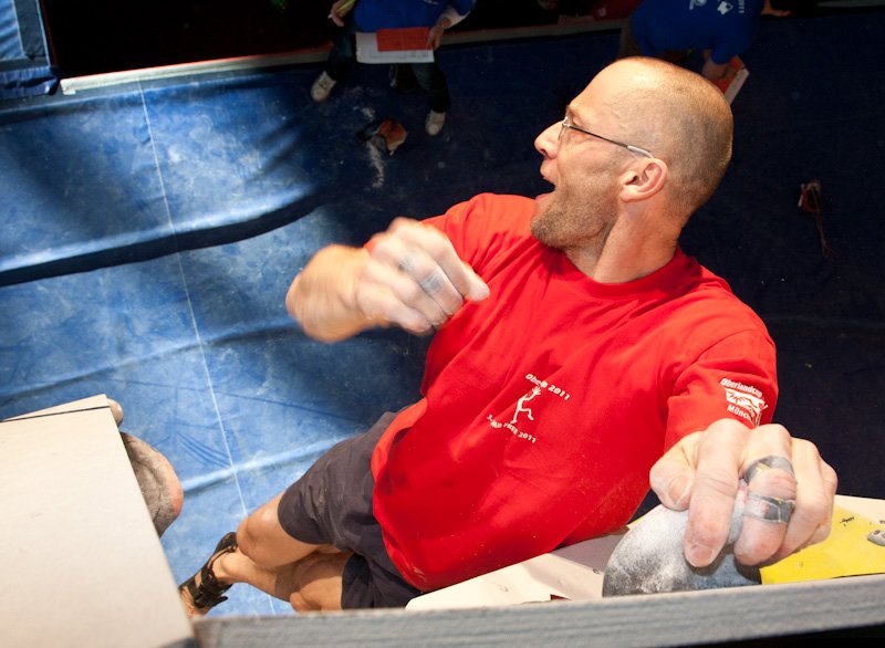 Zum Oberlandcup zählen außerdem der CLIMB FREE auf der Münchner Messe und die Münchner Stadtmeisterschaft, die am 28.5. in Thalkirchen stattfindet. Ein erstklassiges Schrauberteam ist im Einsatz: Monika Retschy, eine der drei besten deutschen Wettkampfboulderfrauen; Jacub „Kochelassel“ Kunc, der seit Jahren die besten Jugendkletterer Münchens trainiert, Thomas „Tomtom“ Lindinger, vor dem derzeit ein 8A+-Boulder nach dem anderen in die Knie geht. Auch der Autor dieser Zeilen wird das eine oder andere Boulder-Ei legen. Die Teilnehmerzahl in Gilching ist im Gegensatz zur Münchner Stadtmeisterschaft begrenzt. Es liegen bereits über 130 Voranmeldungen (50 mehr als 2010) vor.
