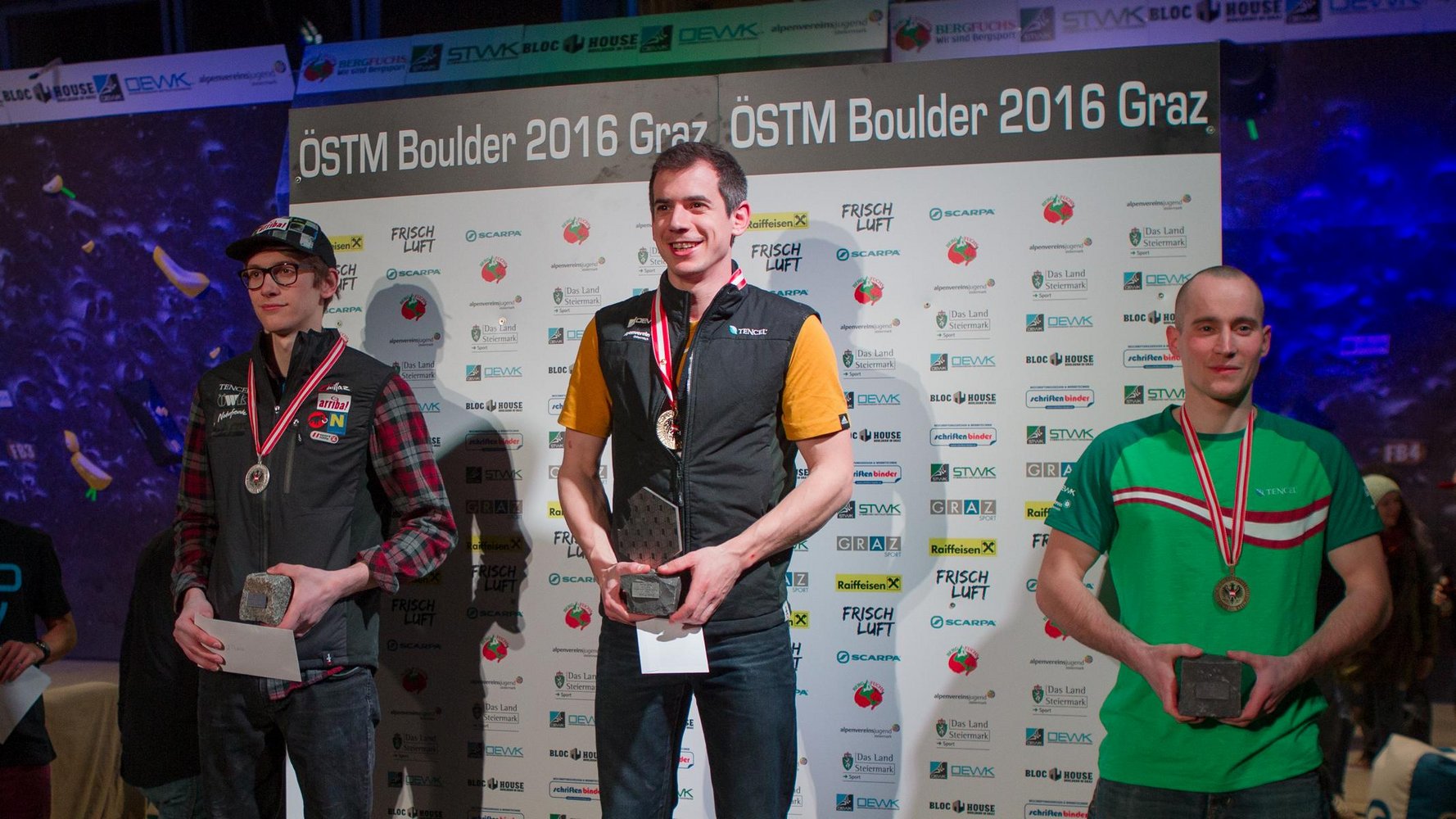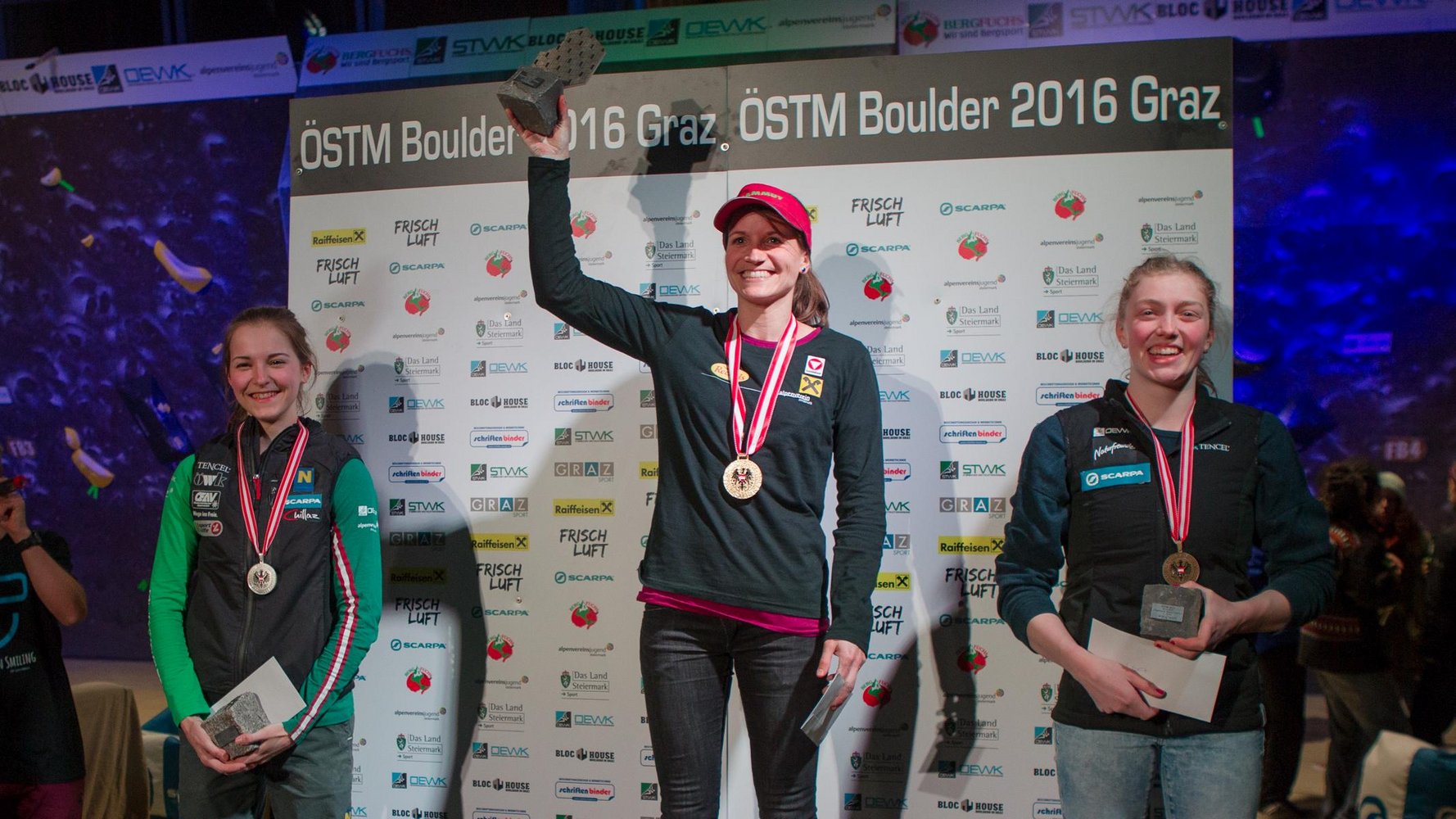 34 Tage vor Beginn der Boulder-Weltcupsaison gingen am Samstag, 12.03.2016, die Österreichischen Boulder-Staatsmeisterschaften in Graz über die Bühne. Vor vollem Haus sicherten sich mit Anna Stöhr und Lukas Ennemoser die beiden Top-Favoriten aus Tirol den Staatsmeistertitel vor den Niederösterreichischen Jungstars Jessica Pilz und Georg Parma. Bronze sicherten sich Franziska Sterrer aus Oberösterreich bzw. Max Rudigier aus Salzburg.