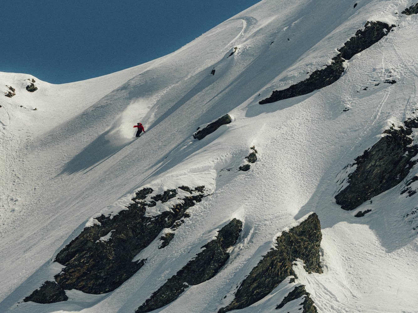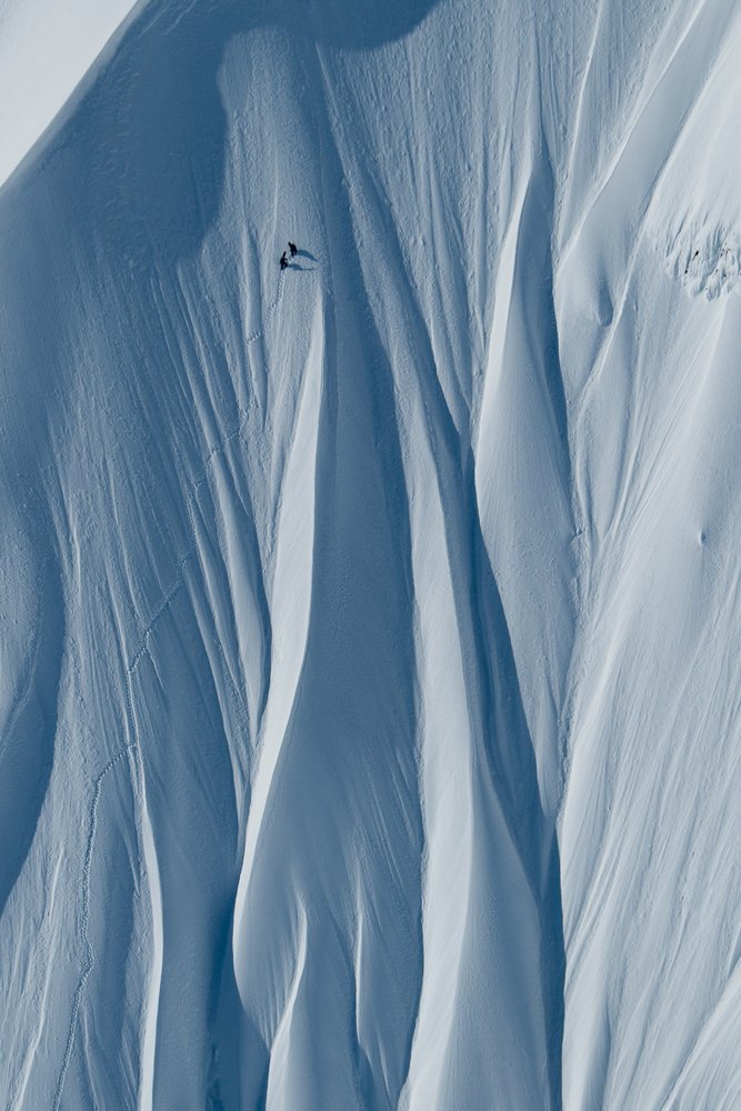 Eine 1.200 Meter hohe Wand hinunterzufahren ist eine Sache, aber hinaufzuwandern ist eine ganz andere Herausforderung. Der Höhenunterschied ist so extrem, dass selbst ein kleiner Schneeball schnell zu einer gefährlichen Lawine werden kann und sich die Schneequalität innerhalb weniger Schritte unerwartet ändern kann.