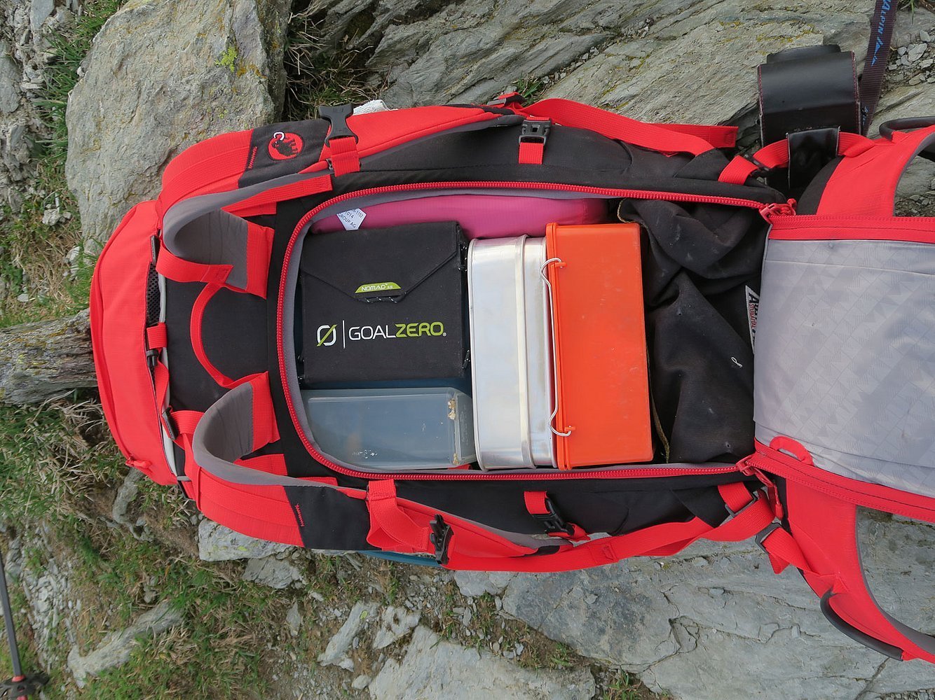 In den Rucksack kommen wetterfeste Kleidung, eine Trinkflasche, Snacks wie beispielsweise Energieriegel, eine Karte bzw. ein GPS-Gerät, eine Stirnlampe sowie Sonnenschutz und eine Sonnenbrille. Auch ein Erste-Hilfe-Set darf nicht fehlen. Denn falls auf dem Berg ein Unfall passieren sollte, ist es wichtig, gleich agieren zu können.