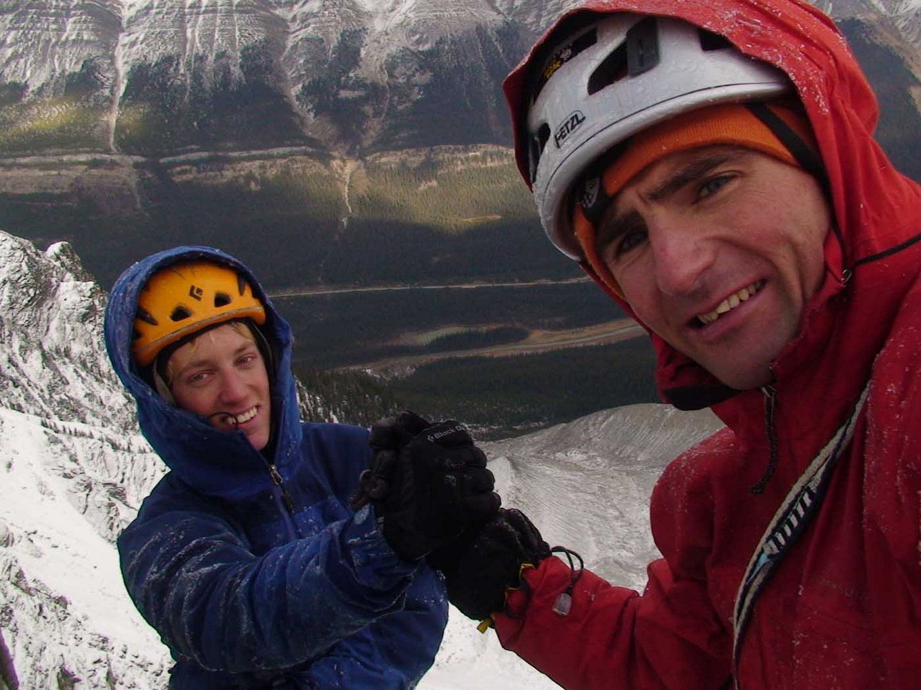 Der Empfang in den Kanadischen Rocky Mountains war nicht besonders freundlich: Schneefall, heftige Winde und bereits empfindlich kühle Temperaturen wehten ihnen um die Ohren. Uli ist mit Simon Anthamatten, einem jungen und sehr talentierten Bergsteiger aus Zermatt unterwegs. Ihr Vorhaben ist ganz simpel: Eisklettern und Bergsteigen, soviel es geht und hoffentlich so wenig wie möglich – oder am besten eigentlich gar nicht - herumzusitzen.
