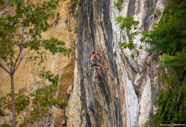 James Pearson hat sich mit den Erstbegehungen der Routen “The Groove” und “The Walk of Life” vor allem im Trad Climbing einen Namen gemacht. Für den gebürtigen Briten und seine Partnerin Caroline Ciavaldini sind die Philippinen eines der spannendsten Klettergebiete Süd-Ost-Asiens, das die beiden auch in Zukunft zusammen erkunden wollen.