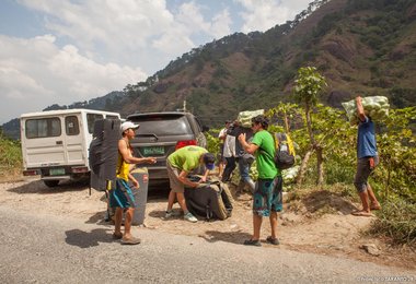 Auf die Insel Cebu haben wir insgesamt 100kg Equipment mitgebracht, das Kletterer aus der ganzen Welt gespendet haben. Eine der Felswände, die wir dort erschlossen haben, tauften wir Monsterella. Die stark überhängende Wand, ist etwa 60 Meter lang und 30 Meter hoch. Im Moment gibt es dort zehn Routen, von 8a bis etwa 8c, wobei das Gebiet noch deutlich mehr Potential besitzt. Wir hoffen, dass die Locals sich dort weiterentwickeln – in Sachen Klettern wie auch im Bohren von neuen Routen.“