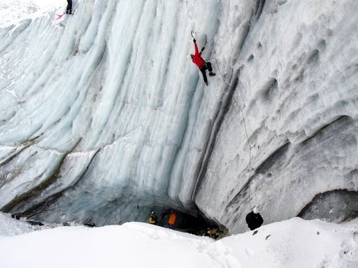 Der Zustand, der schon Jahrelang bekannten und sehr beliebten Trainingmöglichkeit für Eiskletterfreaks hat sich während des letzten Sommers eher weniger, als während vorhergegangener Jahre, verändert. Allerdings hat die Wand wiederum an Höhe verloren. Auch die ca. 70° steile, 50 Meter Eisflanke eignet sich weiterhin bestens für Anfänger oder auch für Eiskletterkurse.