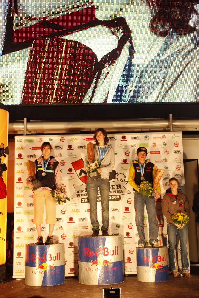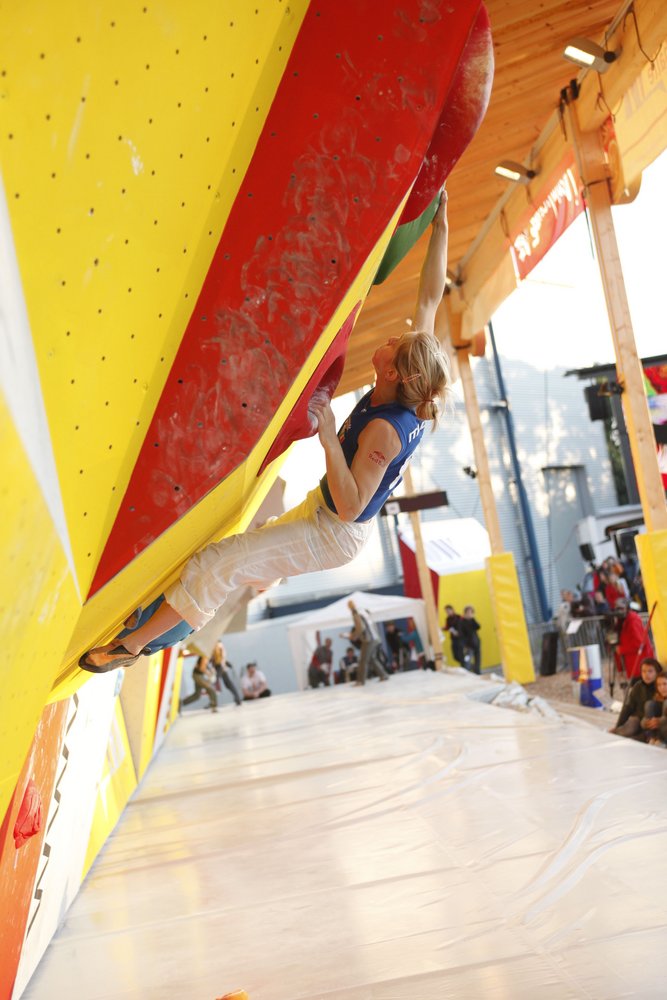 Bei den Damen war Anna Stöhr mit einer souveränen Leistung ins Finale geklettert. In der Entscheidungsrunde konnte die Weltmeisterin allerdings nicht mit der Siegern Aleksandra Balakireva (RUS) mithalten, die den Bouldern in nur vier Versuchen drei Topgriffe abringen konnte. Auch die Japanerin Akiyo Noguchi benötigte einen Versuch weniger als Stöhr und konnte auf dem zweiten Platz ihre Weltcupführung behaupten. Aber trotz mehrer Versuche hielt Stöhr ebenfalls zu guter Letzt drei Topgriffe in der Hand und sicherte den dritten Rang.