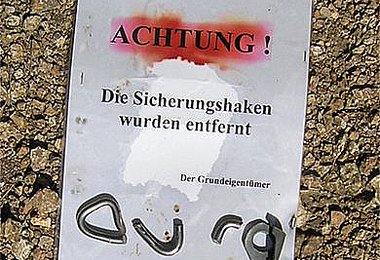 Sollte der Grundeigentümer Recht bekommen, wäre Österreich das erste Land, in dem das Hakenschlagen in alpinen Wänden vom Grundstücksbesitzer untersagt werden darf!