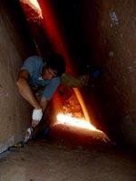 Immer wieder kreuzen sich in Indian Creek unsere Wege mit denen von „Alf“. Der etwa 50jährige scheint mir ein rechtes Unikat zu sein, eine Mischung aus Technikgenie, Wahnsinnigem und Kletterfreak. Er lässt am Lagerfeuer im einen Moment immer wieder unglaubliches technisches Wissen aufblitzen, verteufelt dann aber im anderen Moment die Leute aus der Stadt, die amerikanische „Diktatur“ und das gesamte „fuc.... System“. Er kennt jede Route die wir nennen, kann einem über jeden Sektor alles erzählen und berichtet von vielen Begehungen bis 5.13. Als Alf erfährt, dass ich noch nie mit einer Pistole geschossen haben, beginnt er nur ungläubig den Kopf zu schütteln. „How can a man not know, how to shoot guns?“