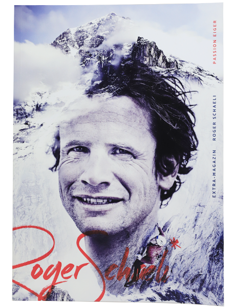 Roger hat letztes Jahr auch ein interaktives Magazin mit vielen Topo und Infos zum Eiger und seiner Nordwand herausgebracht. Hinter zwei Dutzend markierten Fotos stecken Videos und Bildergalerien, die mittels der vom Entlebucher Medienhaus entwickelten EXTRA-App abgespielt werden können. Mehr dazu: https://www.entlebucher-medienhaus.ch/passion-eiger/