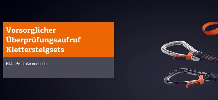 Skylotec ruft Klettersteigsets wegen Problemen mit Bruchwerten des SKYSAFE Karabiners zurück.