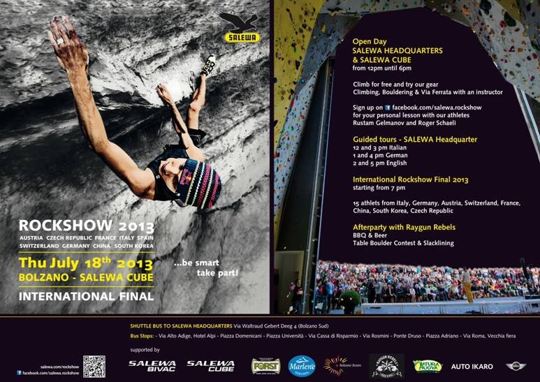 Zum Rockshow-Finale stehen die Türen des SALEWA Headquarters offen – jeder ist eingeladen, kostenlos im SALEWA Cube zu klettern, zu bouldern, den Klettersteig zu testen oder sich an der Slackline zu üben. Zusätzlich werden Führungen durchs Headquarter in deutsch, italienisch und englisch angeboten. Abends wird’s beim Barbecue mit musikalischer Unterstützung der Gruppe „Raygun Rebels“ gemütlich.