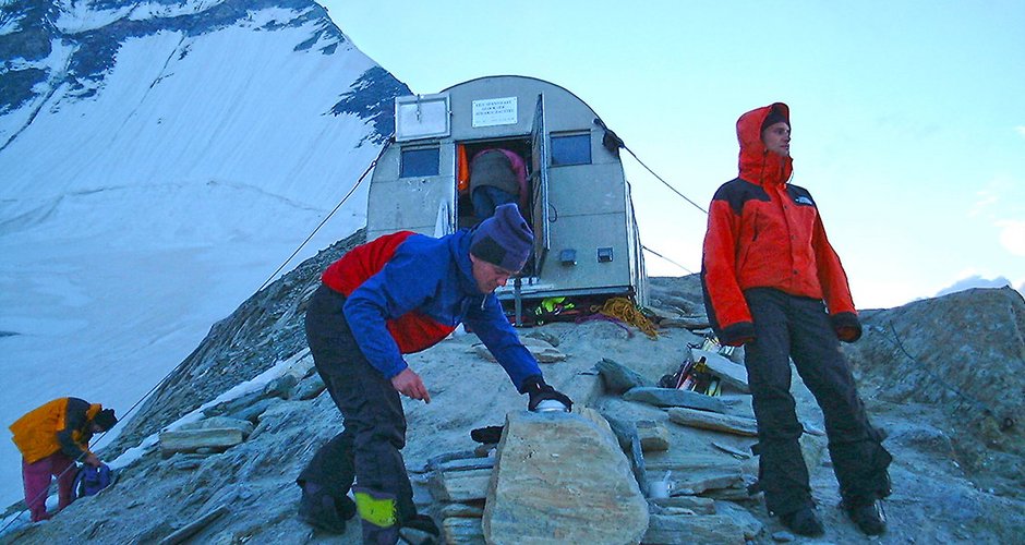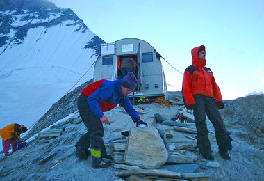 Kochen kann man nur im Freien vor der Glockner-Biwakschachtel - innen ist nur zum Schlafen platz.