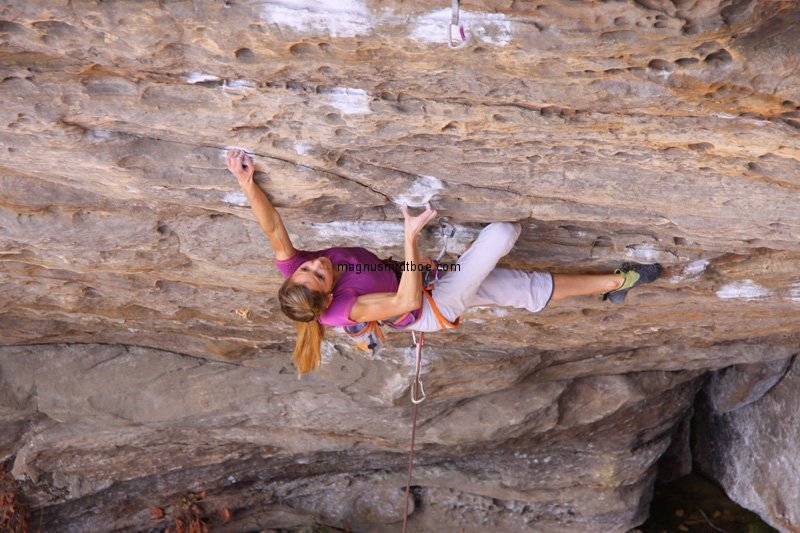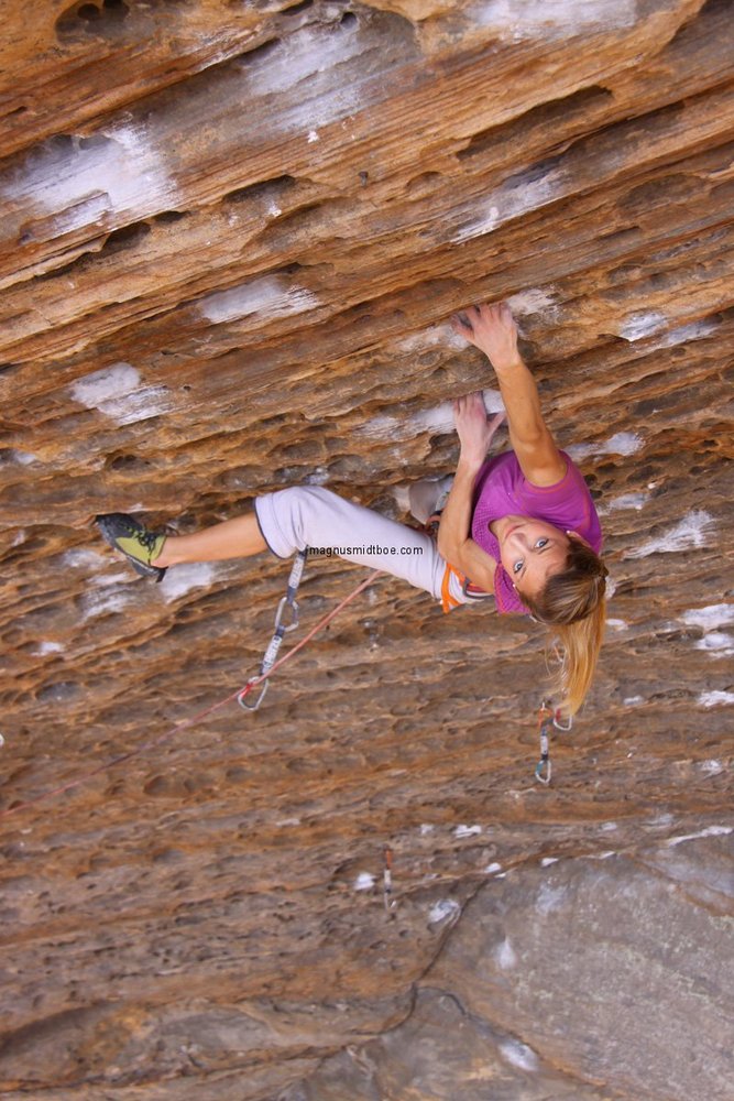 Der nächste Schlag gelang ihr zwei Tage später mit Mike Doyle's Lucifer. Für diese sehr kurze Boulderroute brauchte Sasha gerade mal 6 Versuche verteilt auf 3 Tage, genau so viele wie für Southern Smoke .