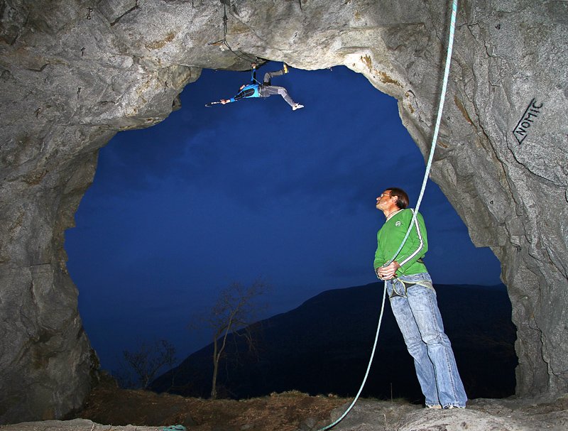 Von allen schweren Routen, die ich diese Saison klettern wollte, war nur noch eine Tour übrig „Law and order M13“. Das ist sicher die härteste Route der Welt, ein Ausdauerhammer. Auf einer Länge von 40 Metern hängt die Wand 30 Meter über. Am ersten Tag nach dem Ausbouldern bin ich bei der letzten schweren Stelle gestürzt, schade. Also musste ich noch einmal wiederkommen. Gleich am nächsten Wochenende bin ich zurückgekommen, diesmal mit Markus Huber. Im ersten Versuch bin ich die Route frei geklettert, Markus schaffte es erst es am nächsten Tag. Ich bin stattdessen eine Nachbarroute geklettert „Fear and Lothing M12“.