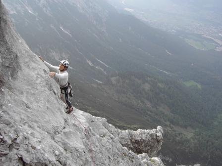 Ausschlaggebend für das Gelingen waren jedenfalls die optimalen Temperaturen am Tag der Begehung und Bernhards Kletterpartner Markus Praxmarer. Weiters eine Portion Ausdauer in den Beinen, Armen und Fingern, sowie sicheres und schnelles seilfreies abklettern im 3. und unteren 4. Schwierigkeitsgrad. Von insgesamt 2450 Metern mussten die beiden 1100m abwärts klettern - speziell in diesem Gelände sind Fehler absolut tabu!