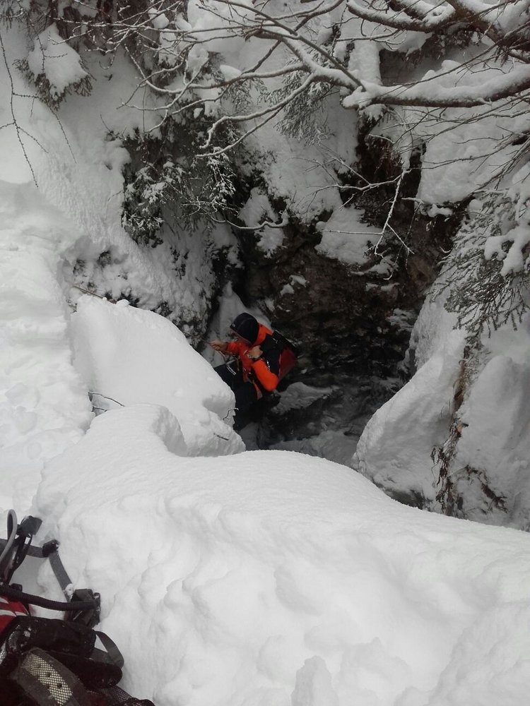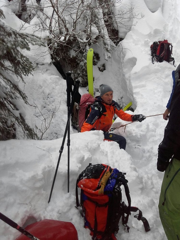 Ein deutscher Skitourengeher stürzte bei der Abfahrt vom Seehorn (Lofer) 14 Meter tief in eine Felsdoline. Nach der Bergung durch Bergretter aus Lofer konnte er jedoch nur leicht verletzt selbständig abfahren.