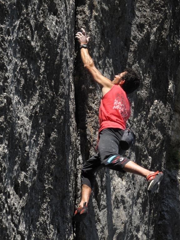 "Für mich waren diese beiden Routen schwieriger als Geo (die bekanntere Route). Man muß sich hier an winzigen Felsvorsprüngen von nur wenigen Millimetern festhalten. Auch die Tritte sind minimal. Das erfordert eine völlige mentale Kontrolle und die Durchführung absolut perfekter Bewegungen. Diese zwei Touren waren die größte Genugtuung für mich!"