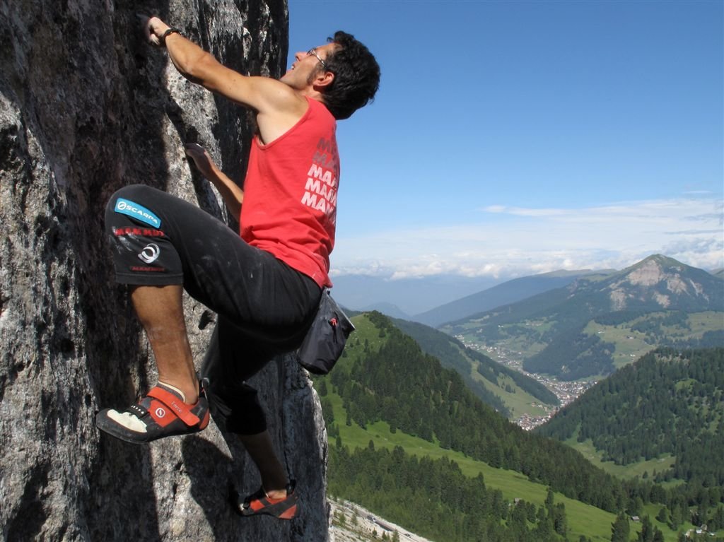 Manchmal kann man ihn beim Solo-Klettern am Sellastock beobachten; aber er spricht selten darüber - es ist etwas sehr persönliches für ihn. "Dieses Mal habe ich aber entschlossen, über meine Erfahrung im Alleingang zu berichten. Mit der Aneinanderreihung der 5 Routen habe ich bewiesen, dass es möglich ist auch hier bei uns, in den Dolomiten, alpine Höchstleistungen zu vollbringen. Es ist möglich große Herausforderungen zu finden und tolle Bergerlebnisse zu haben, ohne ganze Weltreisen machen zu müssen. Die schwierigsten und schönsten Wände stehen vor unserer Haustür; wir müssen sie nur klettern!", so die Einladung von Manfred, der täglich als international anerkannter Bergführer den Gästen "seine" Dolomiten zeigt.