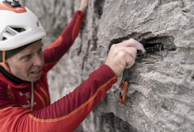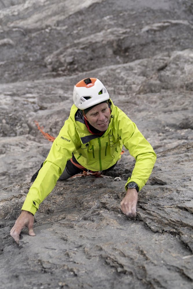 Im Alleingang kletterte Robert Jasper im Rope-Solo-Stil, rotpunkt, einem der anspruchsvollsten Kletterstile überhaupt, nur die natürlichen Haltepunkte des Gesteins nutzend, jedoch sich mit einem Seil sich selbst sichernd, auf „Neuland“ durch die Wand. Die Route „Meltdown“ 7a+ ist nun der neueste Kletteranstieg durch die berühmteste Nordwand der Alpen!