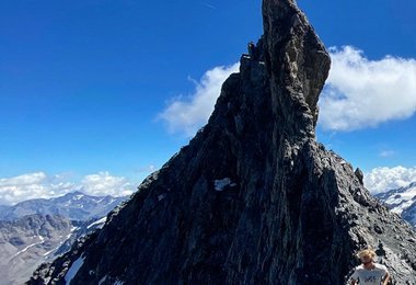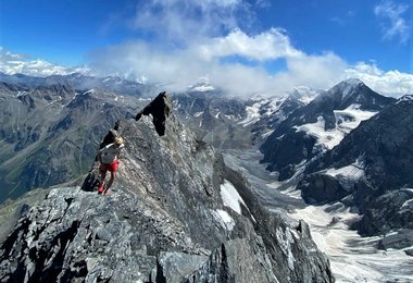 Da ich keine Gletscherausrüstung dabei hatte, ging es dann auch wieder den Hintergrat retour, allerdings gemütlich und ohne Zeitdruck.