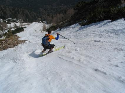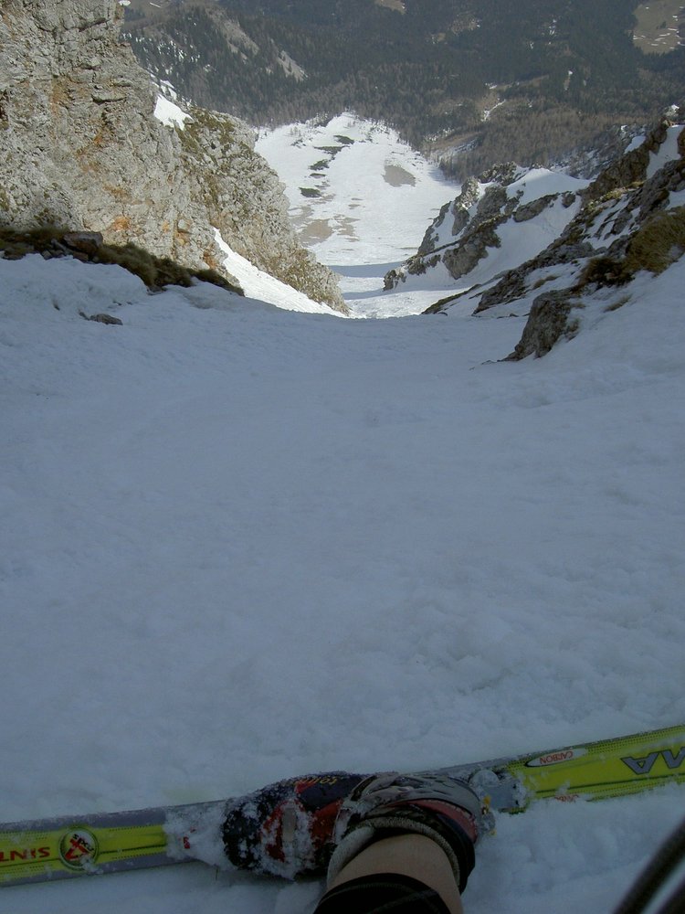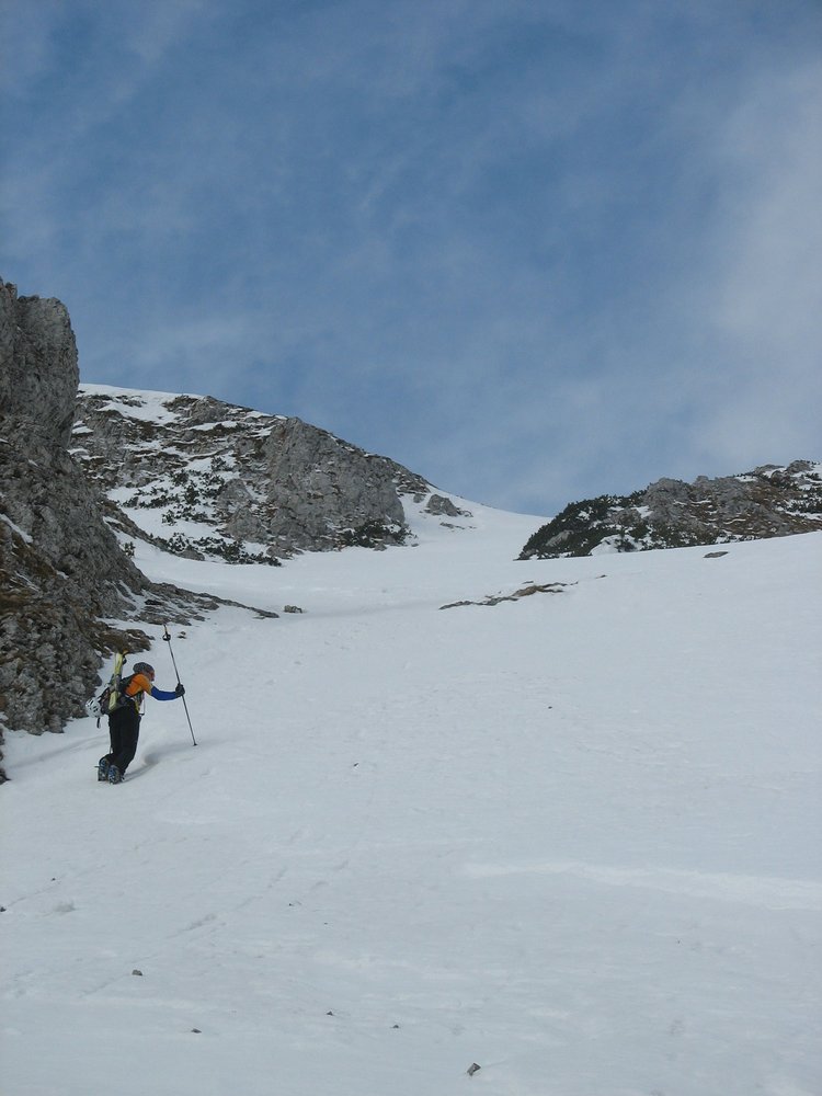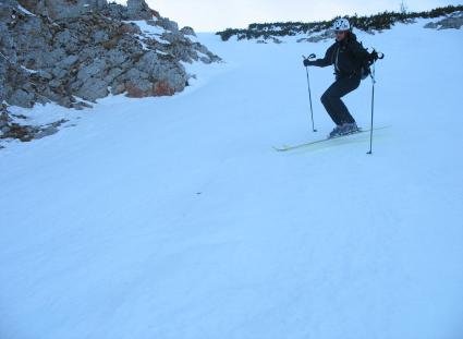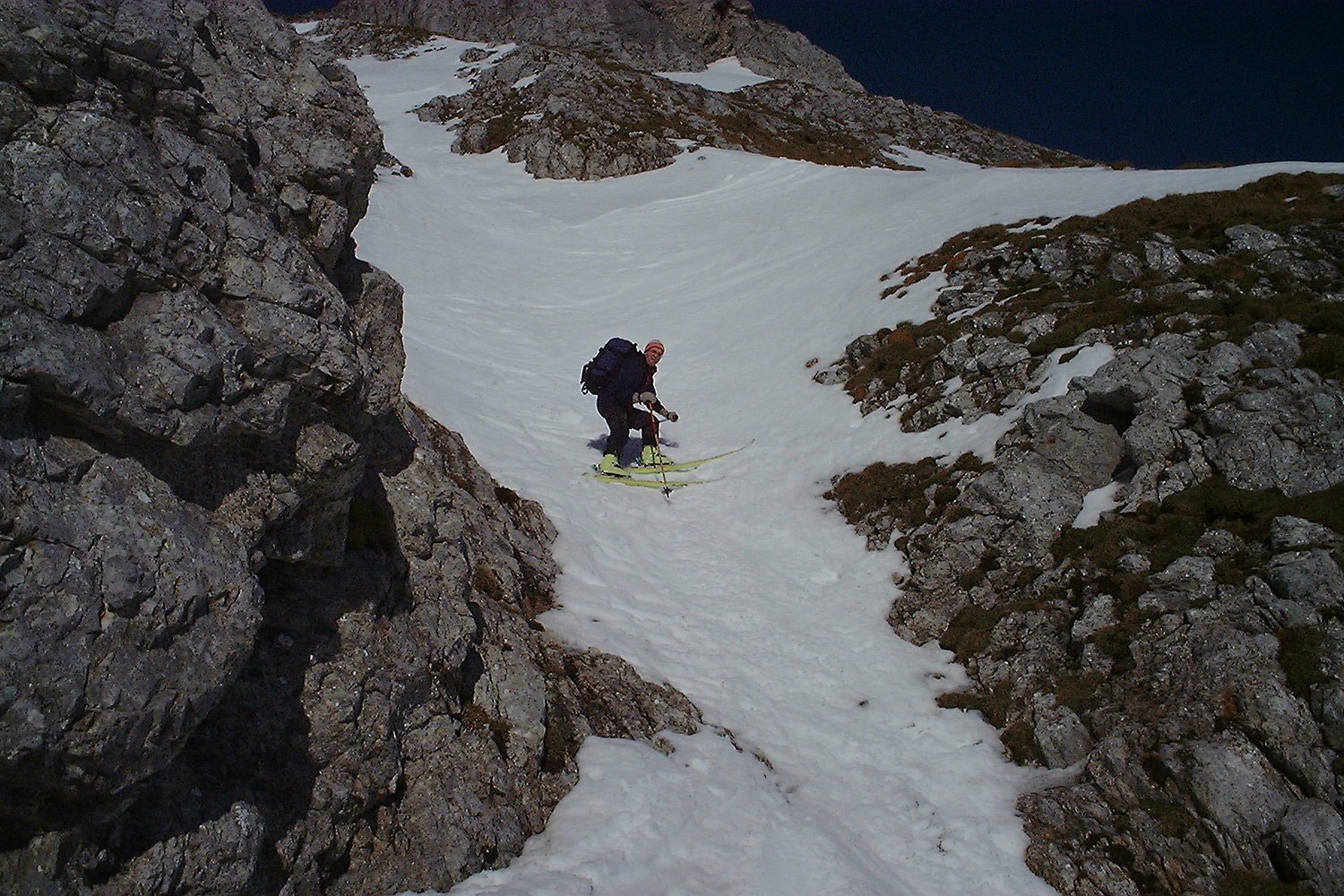 Es gibt Tage auch im Hochwinter, wo diese Rinnen durchaus machbar sind. Nur trifft man da auf sehr harte, fast vereiste Zustände - und die können lebensgefährlich sein. Ein Sturz hätte hier fatale Folgen. Und auch im Frühjahr bei Firn ist es alles andere als lustig, dort zu stürzen. Natürlich ist die beste Zeit das Frühjahr, doch auf grund der bescheidenen Höhe von 2.000 m sollte man da sehr früh aufstehen, um eine gute Abfahrt erleben zu dürfen. Und gerade im Frühjahr ist die Gefahr von Nassschneelawinen schon ab dem späteren Vormittag gegeben.