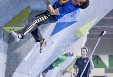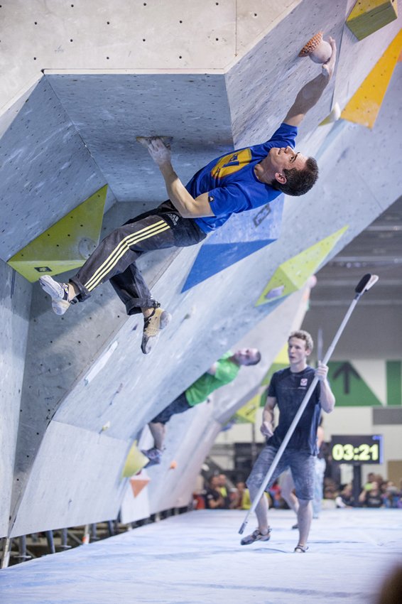 Mindestens gleich spannend wie der Damenbewerb war der Herrenbewerb bei den Boulder-Staatsmeisterschaften. Neben dem Österreichischen Favoritentrio Kilian Fischhuber (OeAV Waidhofen/Ybbs), Jakob Schubert (OeAV Innsbruck) und Lukas Ennemoser (OeAV Innerötztal) mischten im Kampf um den Tagessieg beim BlocAlpin Boulderbewerb auch zwei Große des internationalen Bouldersports mit, jedoch ohne für die Staatsmeisterschaft gewertet zu werden. Der zur Zeit wohl stärkste Felskletterer der Welt, Adam Ondra (CZE), sowie der Engländer Stewart Watson (GBR) qualifizierten sich souverän für das große Finale.