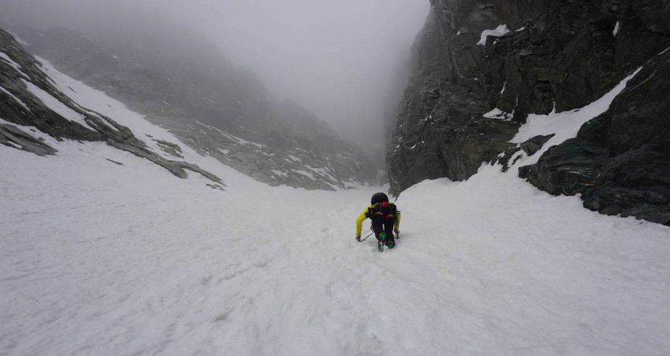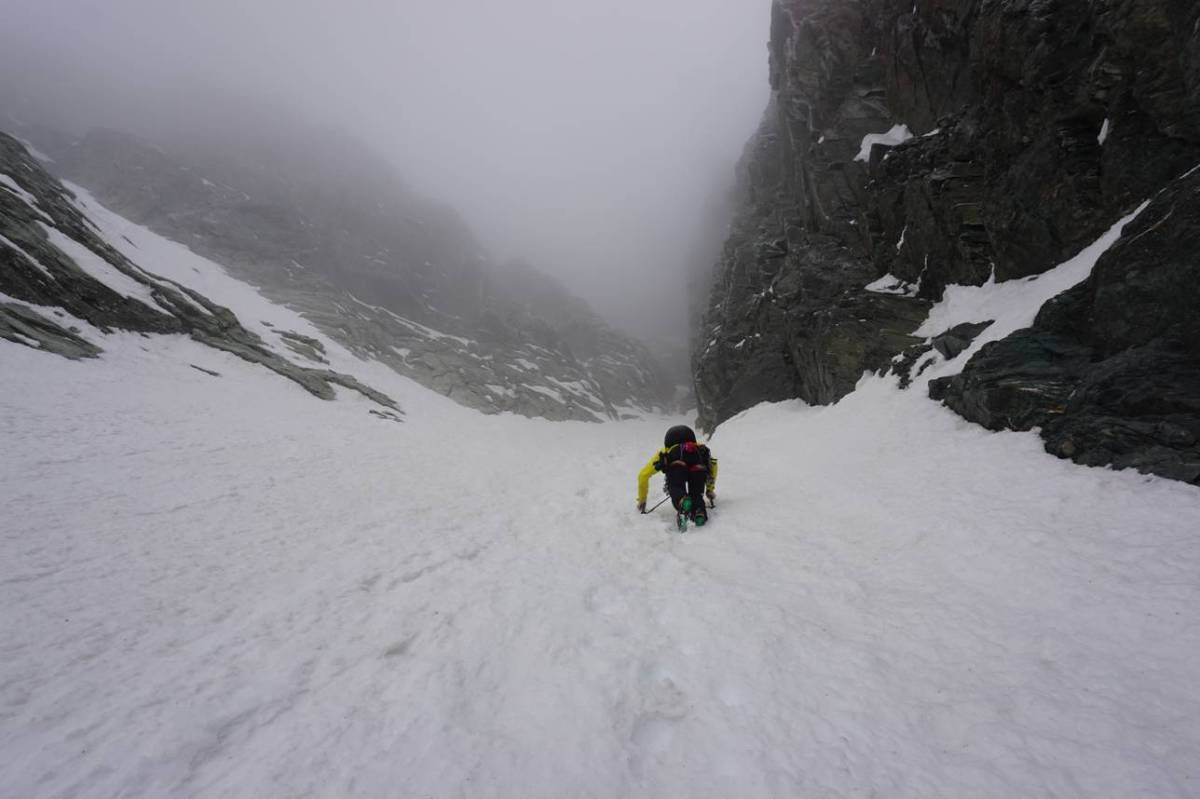 Der Gully der sich zwischen dem Stüdlgrat und dem Südgrat befindet, stach uns immer wieder ins Auge und es liess sich nach längerer Recherche nicht herausfinden, ob es schon jemand geklettert war oder nicht. Die einzige Information, die wir herausgefunden haben, ist dass es ein tschechischer Kletterer vor einigen Jahren alleine versuchte und dabei ums Leben kam. Doch dieses Jahr wollten wir es uns näher anschauen.