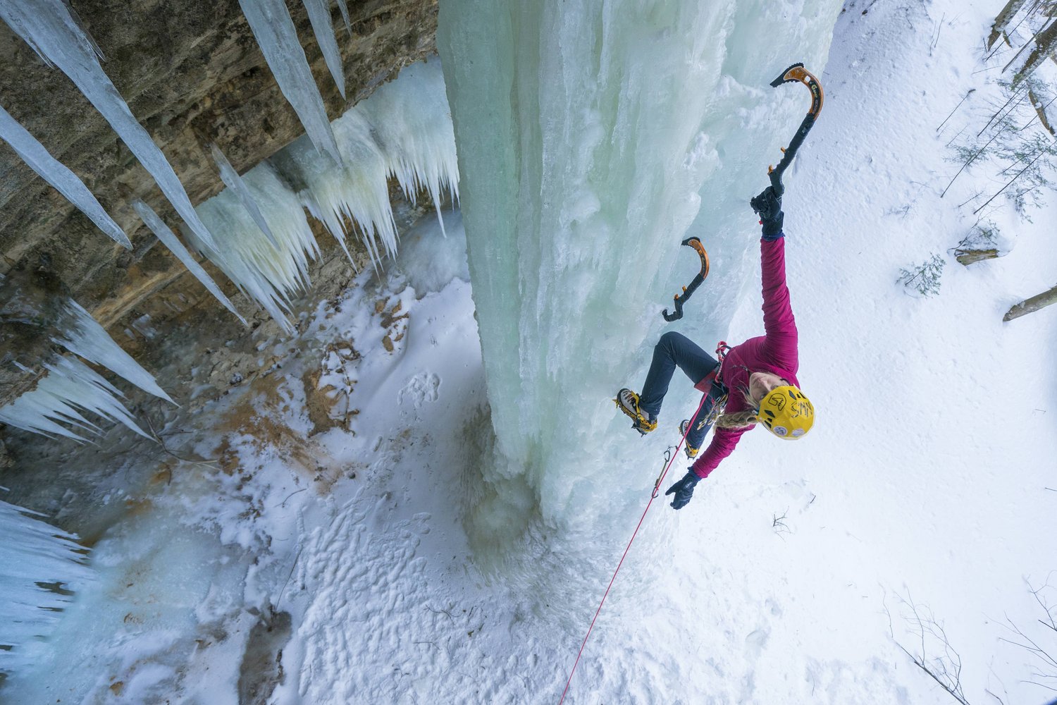 Die Weltklasse-Kletterein aus den USA Sasah DiGiulian hat für eine dreiteilige Serie ihre Kletterausrüstung gegen die Eisgeräte getauscht und sich mit der Abenteurerin Angela VanViemeersch zusammengetan, um die perfekten Temperaturen unter null an der Oberen Halbinsel, auch the UP (Upper Peninsula) genannt, zu nutzen.