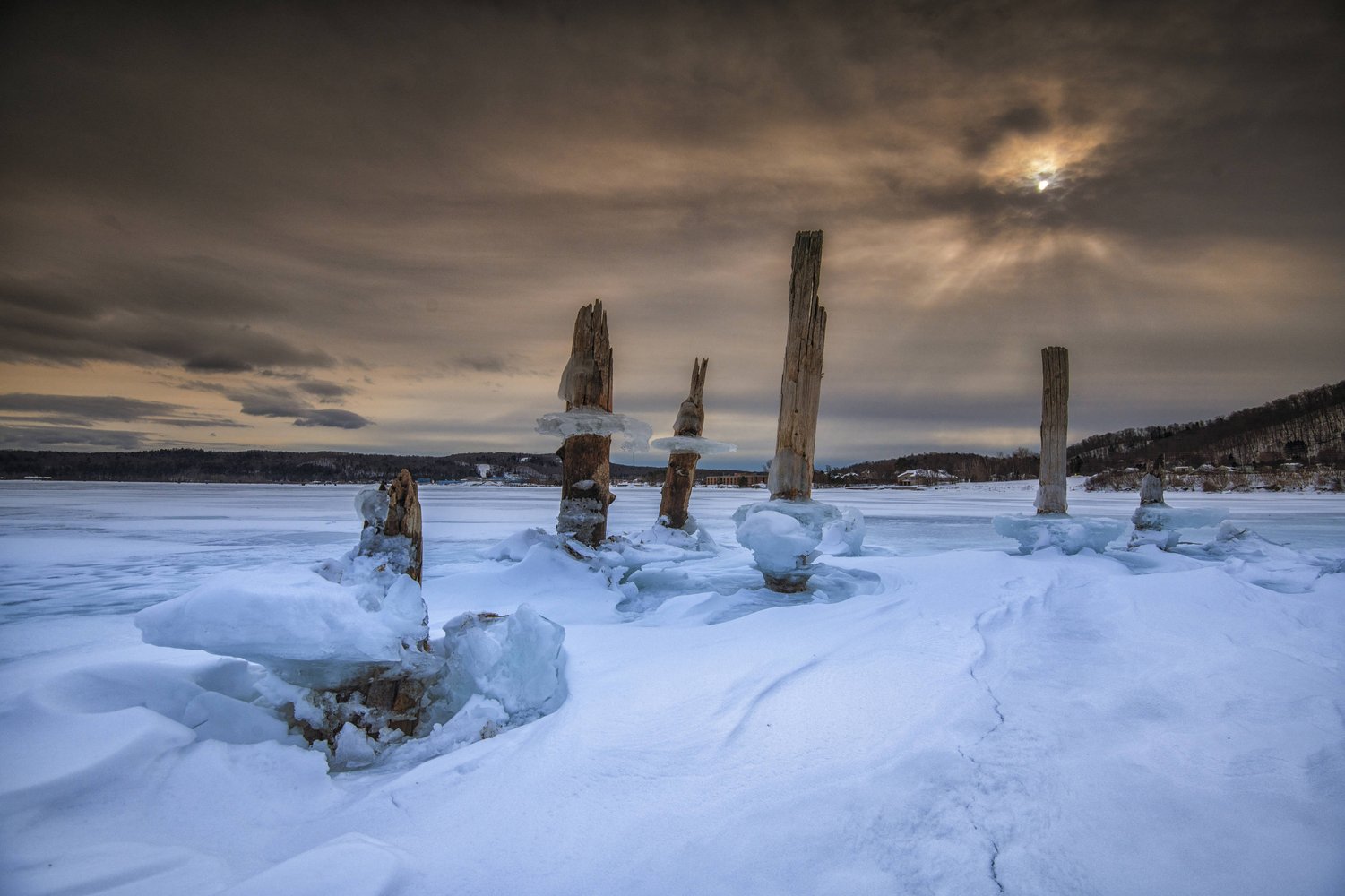 Das feuchtkalte Wetter birgt hier im Jänner perfekte Bedingungen an den bis zu 60 Meter hohen Klippen, die man nur mit Boot, Schneemobil und Schneeschuhen erreicht.