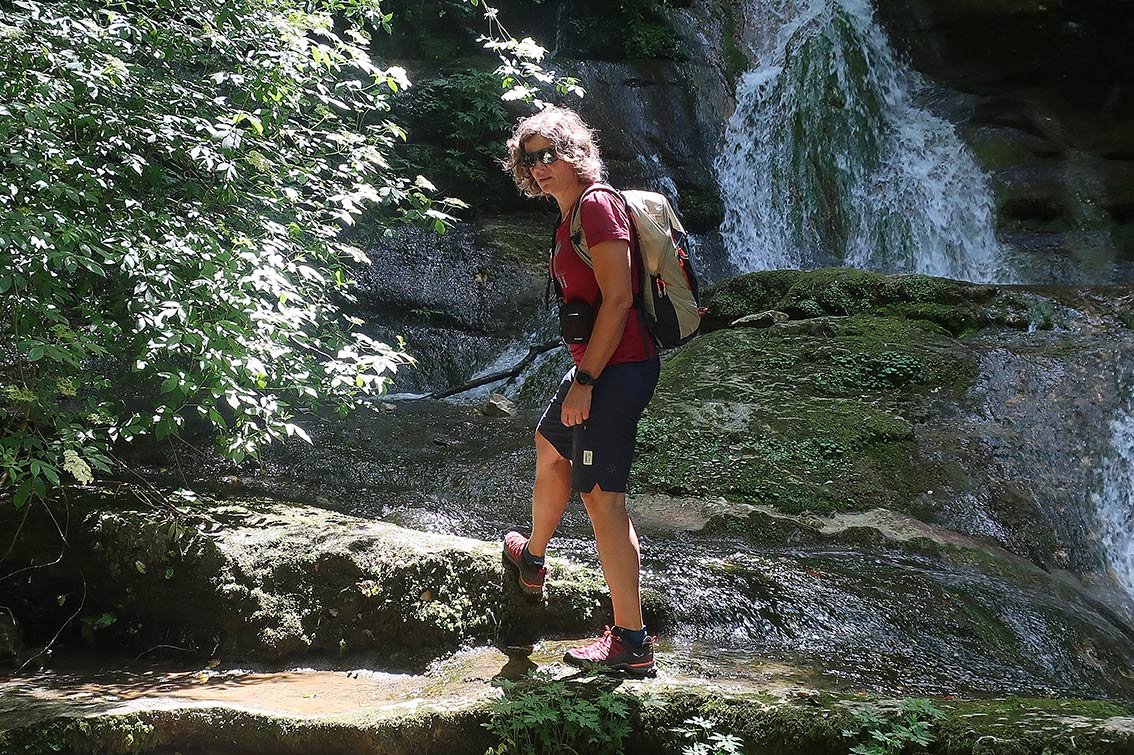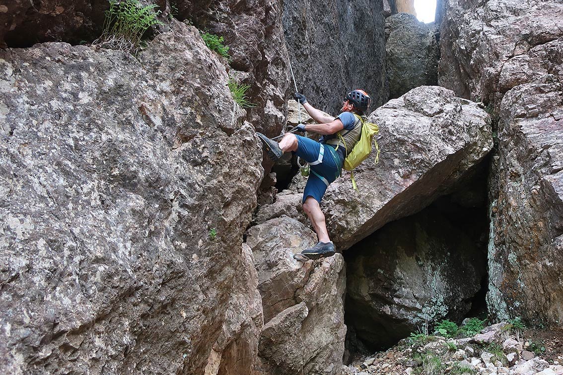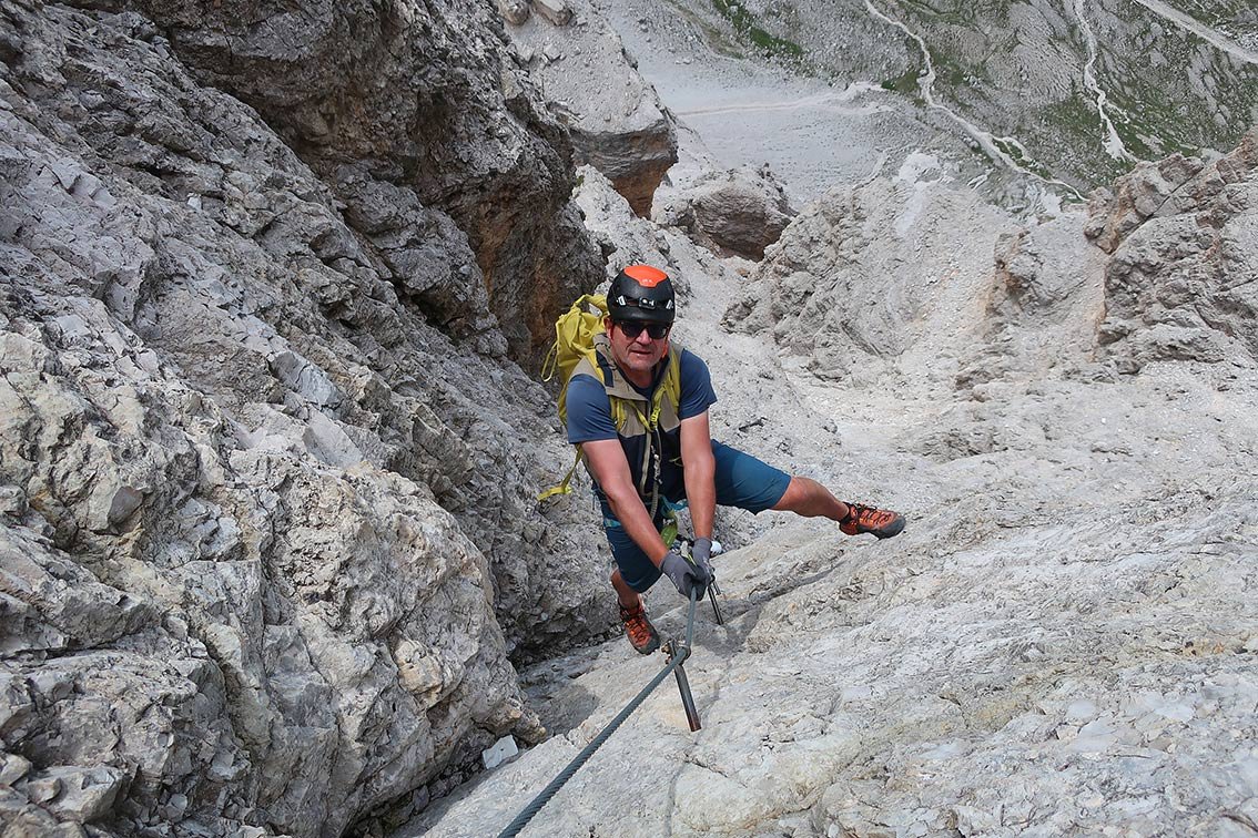 Die Transalperjacke tragen wir meist am Beginn der Tour, bis man sich warmgelaufen hat oder wenn an einer Gratkante oder Scharte Wind ins Spiel kommt. Mit der Transalperjacke bewegt man sich immer noch exzellent, wir fühlen uns beim Klettern in keinster Weise eingeschränkt. Die Jacke lässt sich auch sehr klein verstauen, weshalb wir die Transalperjacke auch bei MTB-Touren in der größeren Hosentasche haben.