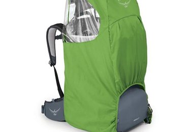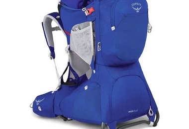 Die Osprey Poco Plus mit ausgeklapptem Sonnenschutz