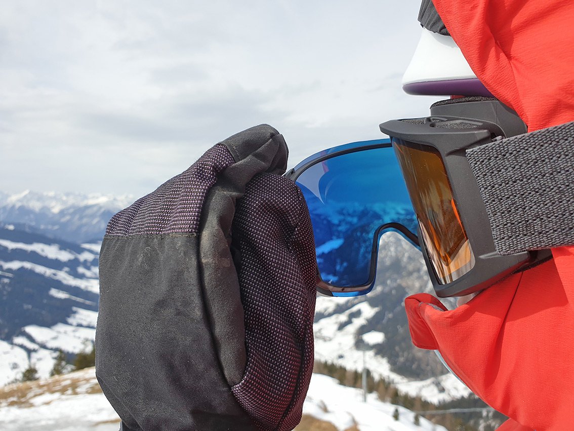 Recht schnell wurde aber klar, dass diese Brille ein kleiner Alleskönner ist. Der Clou liegt in einem Wechselglas, welches man aber nicht umständlich auswechseln muss. Das „bunte“ Glas lässt sich recht einfach von der Brille abziehen – ähnlich wie das auch die Formel 1 Fahrer machen. Nur zum Unterschied, dass wir Skitourengeher das bunte Glas nicht wegwerfen, sondern in einer eigenen Hülle bei Schlechtwetter im Rucksack verstauen.